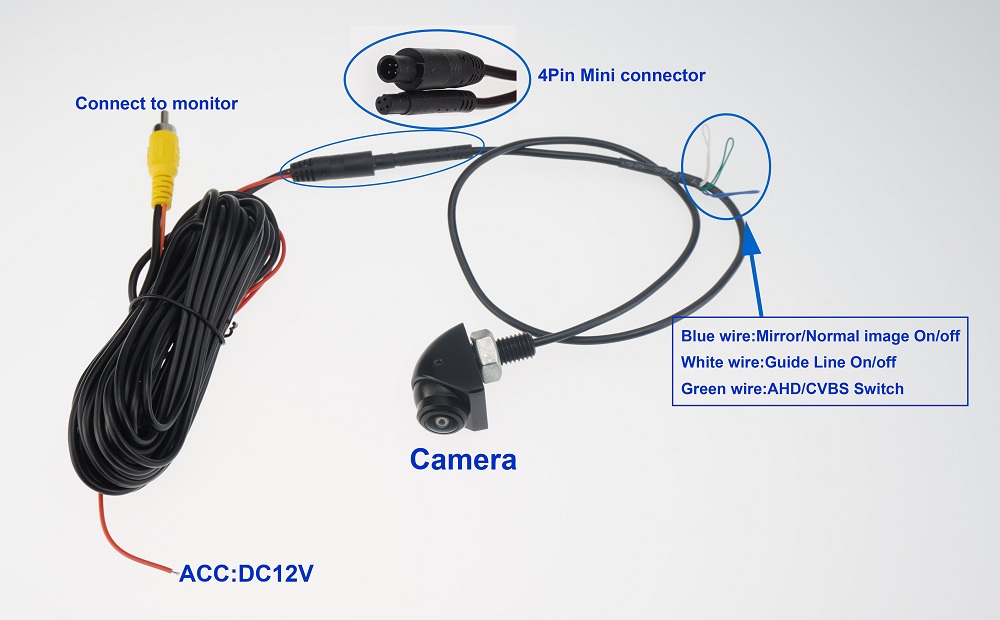 2. Mirror/Normal: The default setting is Mirror mode,cutting the blue wire switch to Normal image