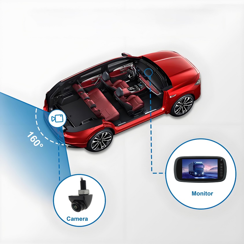 Flip down and Normal 2 mounting method: the usual installation position is near the reverse light,If a higher mounting position is required, such as on Vans or RVs, a flip-down mounting method can be used.