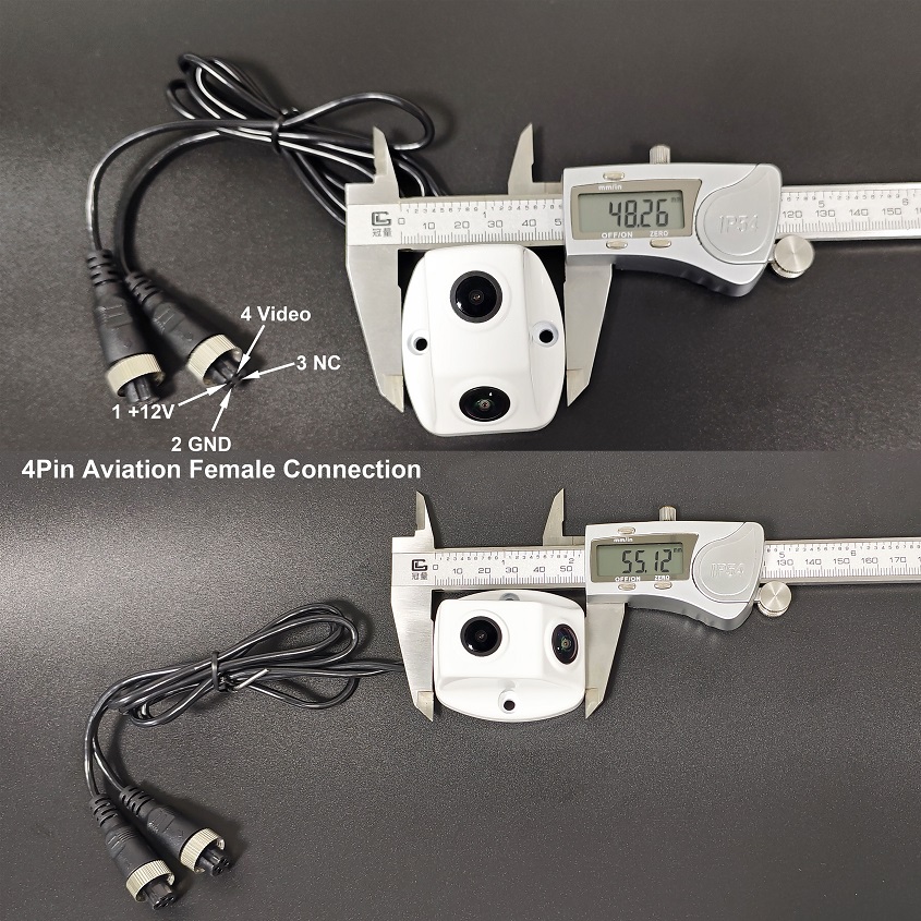 Kit B: If you feel that connecting two extension cables is more suitable, you can choose camera with 4pin aviation connector+2x extension cable +1x rearview monitor, the monitor can be a dash mount monitor or a clip on rearview mirror monitor