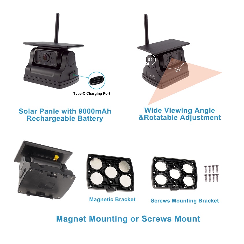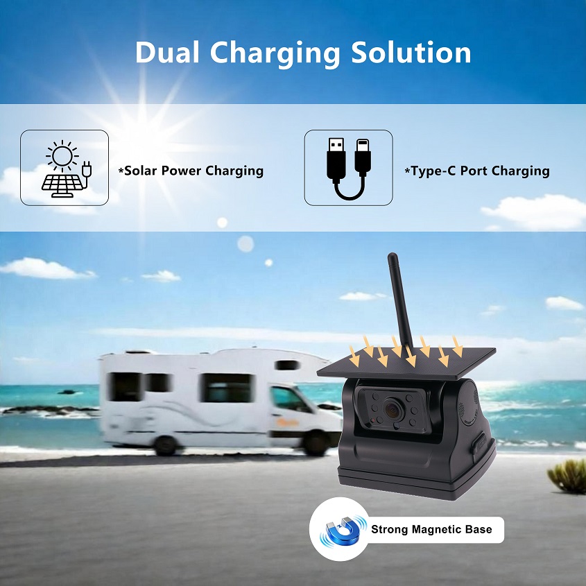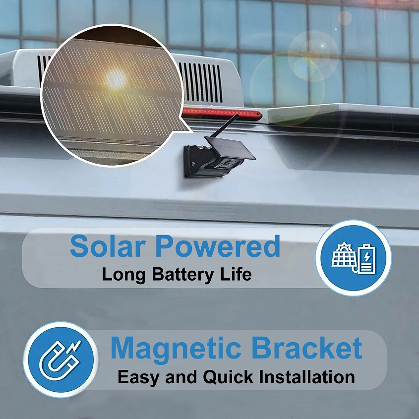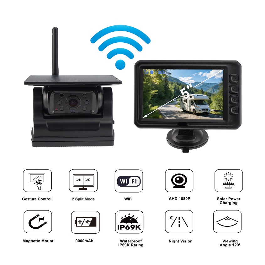 Standtop - 5" 1080p Wireless Monitor & Magnetic Solar Wireless Backup Camera Rechargeable System for comfortable parking and trouble-free mounting. this parking camera increases safety and comfort when parking and driving a vehicle. this innovative system is designed to provide you with an optimal and effective solution for your car (Rv,van,trailer, etc.) you can easily attach the camera anywhere you need via the magnet , without the need for drilling into the vehicle, It is resistant to various weather conditions, with a battery with a capacity of 9000 mAh and solar charging, which allows it to operate even at extreme temperatures.
