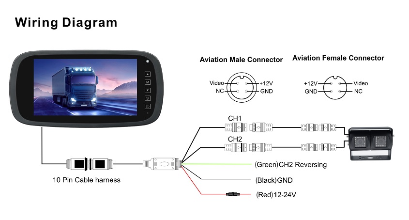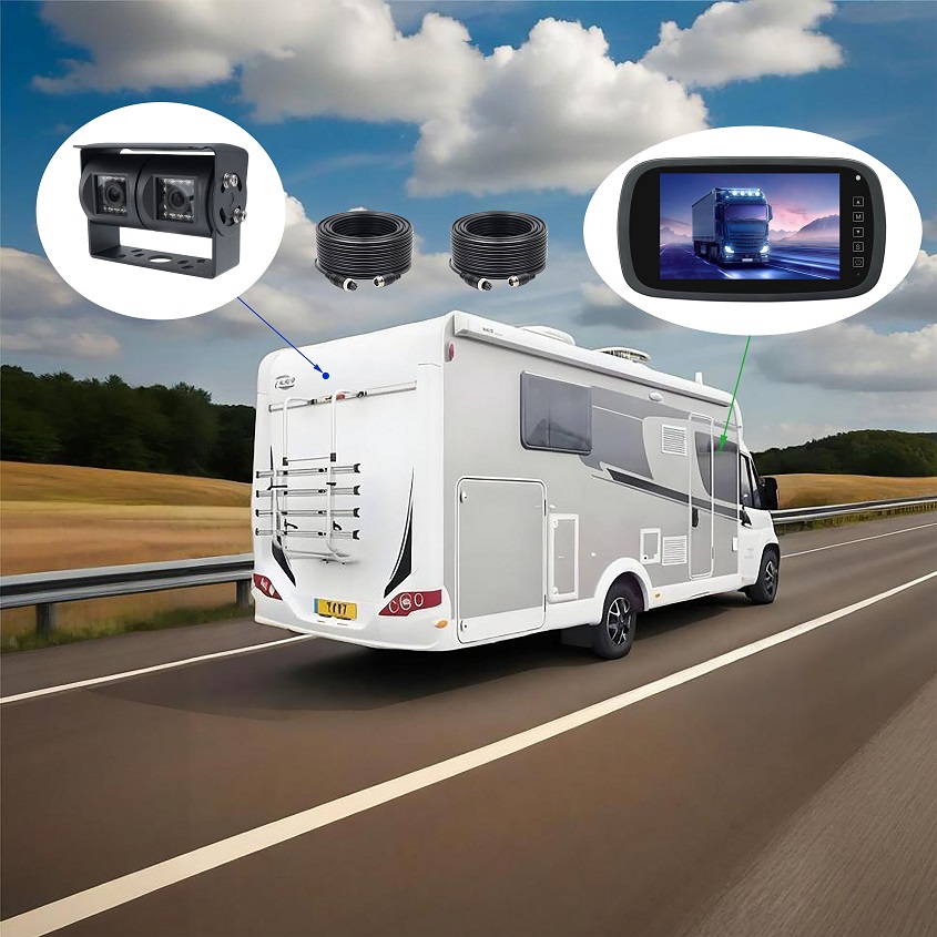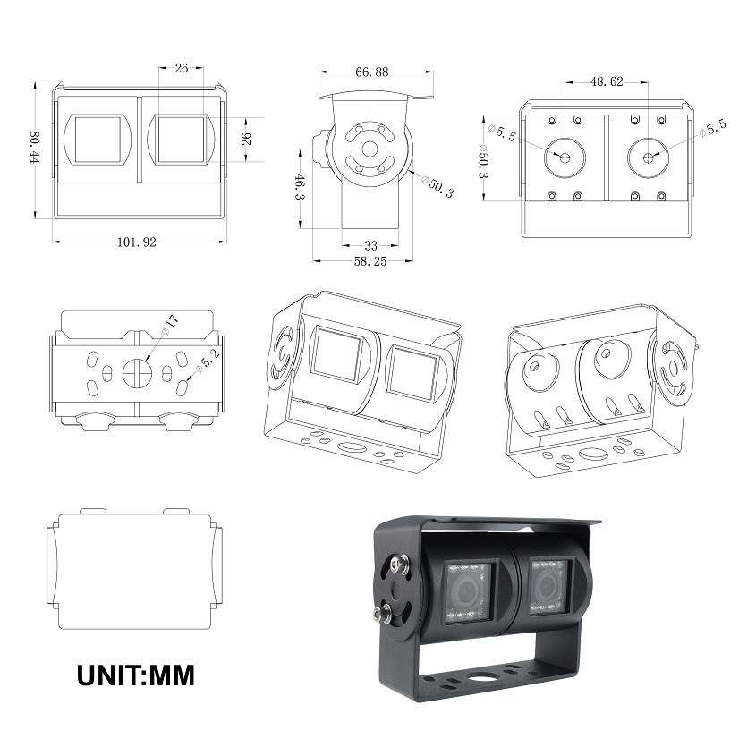 The double lens camera is a HD 1080p cameras in a metal housing, the left camera which with 90-95° Horizontal Angle view is for“Always-on" rear view,so you can have a clear view of the road behind,the right camera which with a 90-95° Horizontal Angle view designed to be a standard reverse camera
